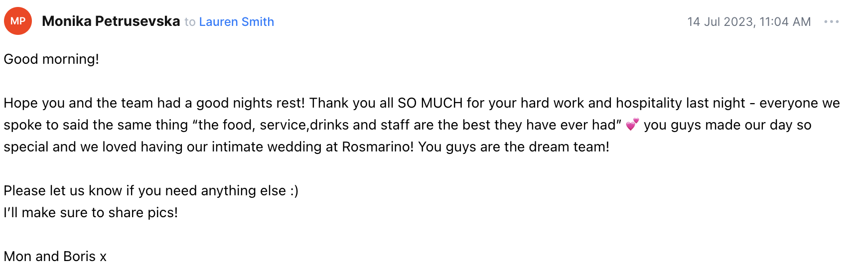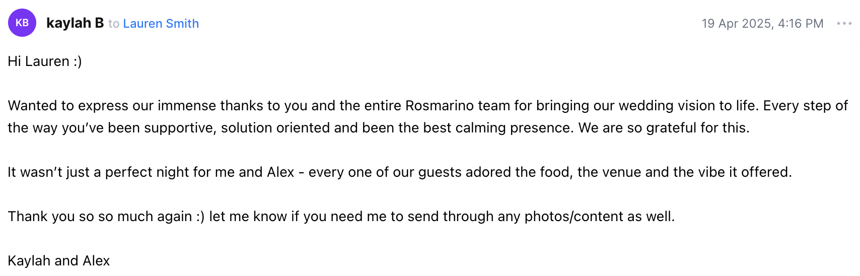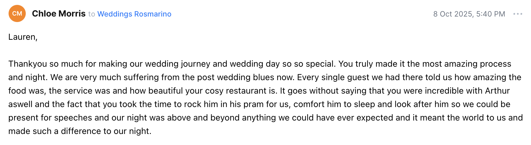 Lauren is on emails from Tuesday to Saturday and will be in touch within 2 business days, thank you.